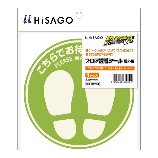 ヒサゴ SR034 フロア誘導シール屋外用 こちらでお待ちください 丸(小)(グリーン)[SR034] 返品種別A