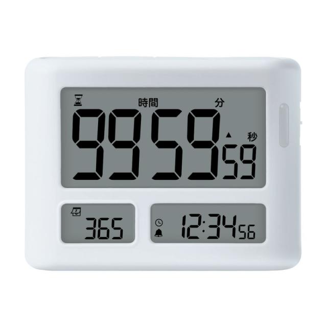 タイマー・デイカウント・時計の3つの機能を3画面で表示できる。