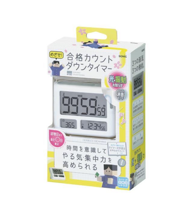 【正規販売店】、ソニック、sonic、めざせ合格カウントダウン、タイマー、トキ・サポ、1、LV-3457-W、ホワイト、勉強、タイマー、ストップウォッチ、時間、集中、話題、勉強法、スタンド付き、光る、光