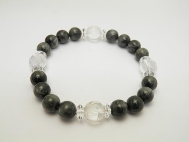 高級四神獣シリーズ 四神獣ブレスレット 水晶彫り 12mm玉 青龍・朱雀・白虎・玄武 イーグルアイ 内径20.5cm 天然石 風水 パワーストーン