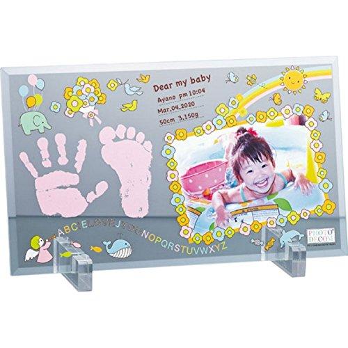 手形足型(男の子はブルー、女の子はピンクでプリント) 【商品内容】商品290×170×85mm(スタンド使用時) 【箱のサイズ】箱295×180×25mm 【材質】ガラス・アクリル 【生産国】CHN(加工:JPN) ※お預かりしたお写真は、商品発送時に 一緒にご返却します。