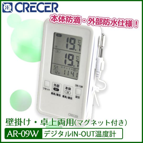 CRECER(クレセル) デジタルIN-OUT温度計 壁掛け・卓上両用 AP-09W (1091304)