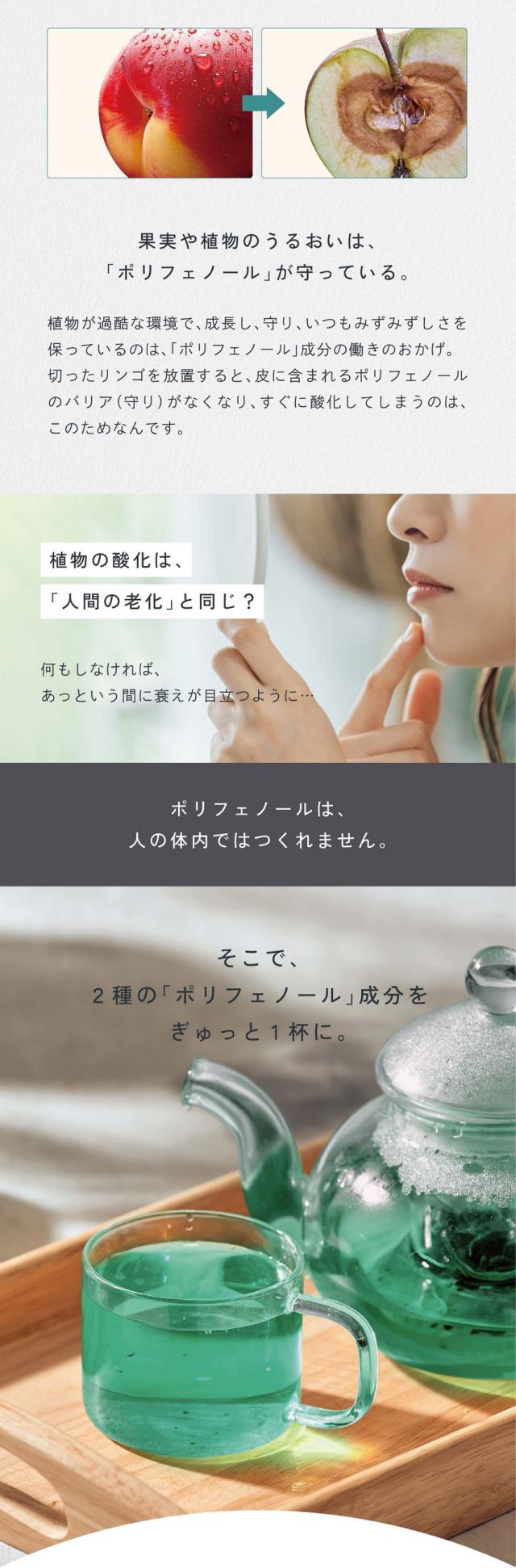美味しく毎日ポリフェノールを補給するために考えられた日本茶xバタフライピーのブレンドです。