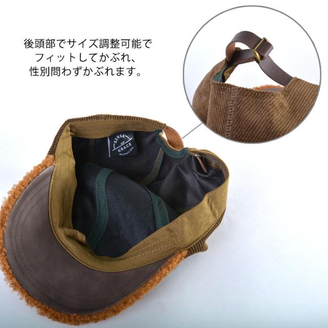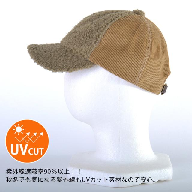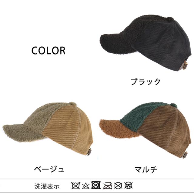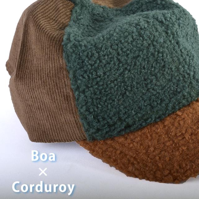 プードルボアとコーディロイの素材を使用したベースボールキャップ。