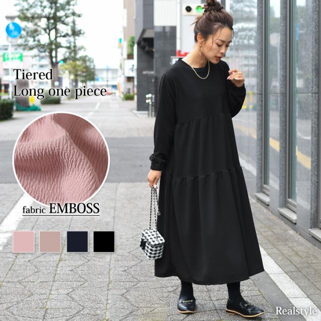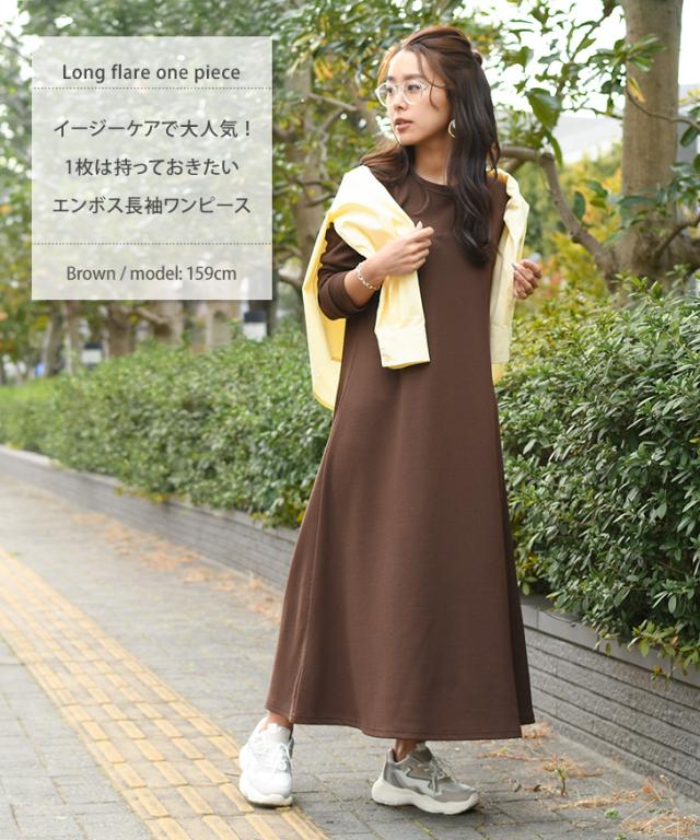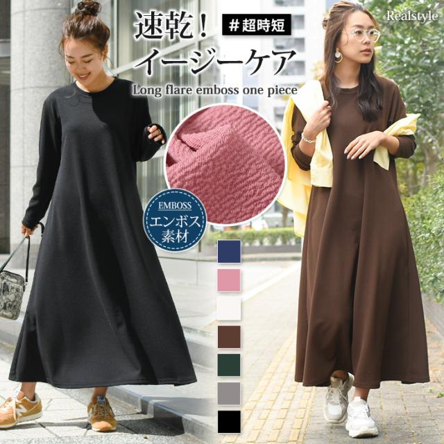 ●イージーケアで大人気!1枚は持っておきたいエンボス長袖ワンピース