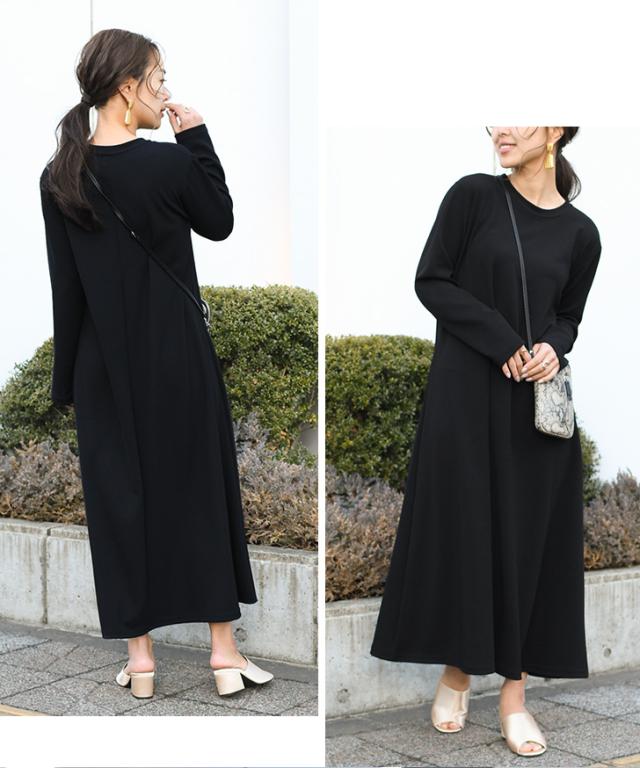 新作 Tシャツワンピース ロング シワになりにくい 形状記憶 春 ワンピ レディース 長袖 マキシ丈 韓国 上品 きれいめ ゆったり 体型カバー フレア Aライン 無地 おしゃれ シンプル グリーン 黒 エンボス 透けにくい マタニティ ロングワンピース 春夏 妊婦服