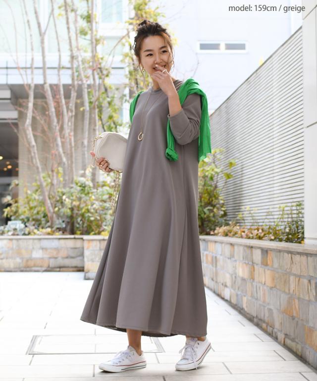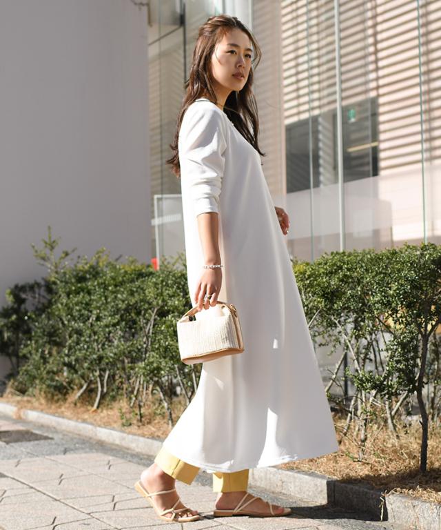 裾に向かって緩やかに広がるAラインシルエットでリラックスムード漂う1枚