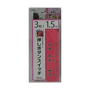 オーム電機 押しボタンスイッチ付きカラー節電タップ 3個口 1.5m ピンク
