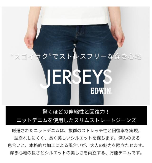 EDWIN ジャージーズ レディース スリムストレート デニム JWE22 エドウィン JERSEYS ジーンズ ストレッチ 伸びる 定番 楽ちん ジーパン パンツ ズボン ストレート ラク 楽 おしゃれ きれいめ 細見え ブランド