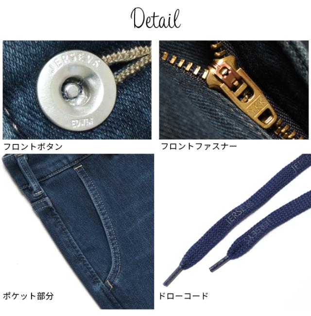 EDWIN エドウィン ジャージーズ スリム 細めのストレート デニム Gパン ジーンズ ジーパン 伸びる ストレッチ 動きやすい 楽チン リラックス感 イージーパンツ ドローコード ひも付き カジュアル 濃色ブルー 淡色ブルー キレカジ スポーティ ブランド シンプル きれいめ カジュアル ラク 楽 美脚 脚長効果 細見え スッキリ 定番 お出かけ 旅行 レディース
