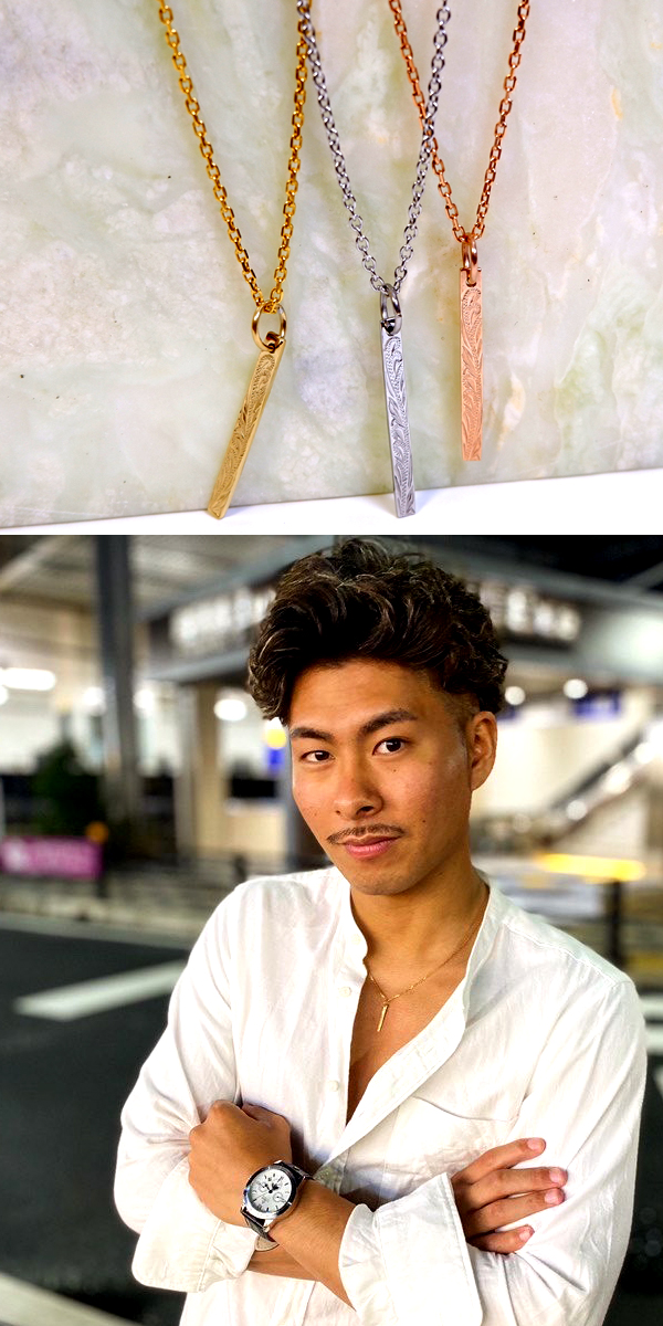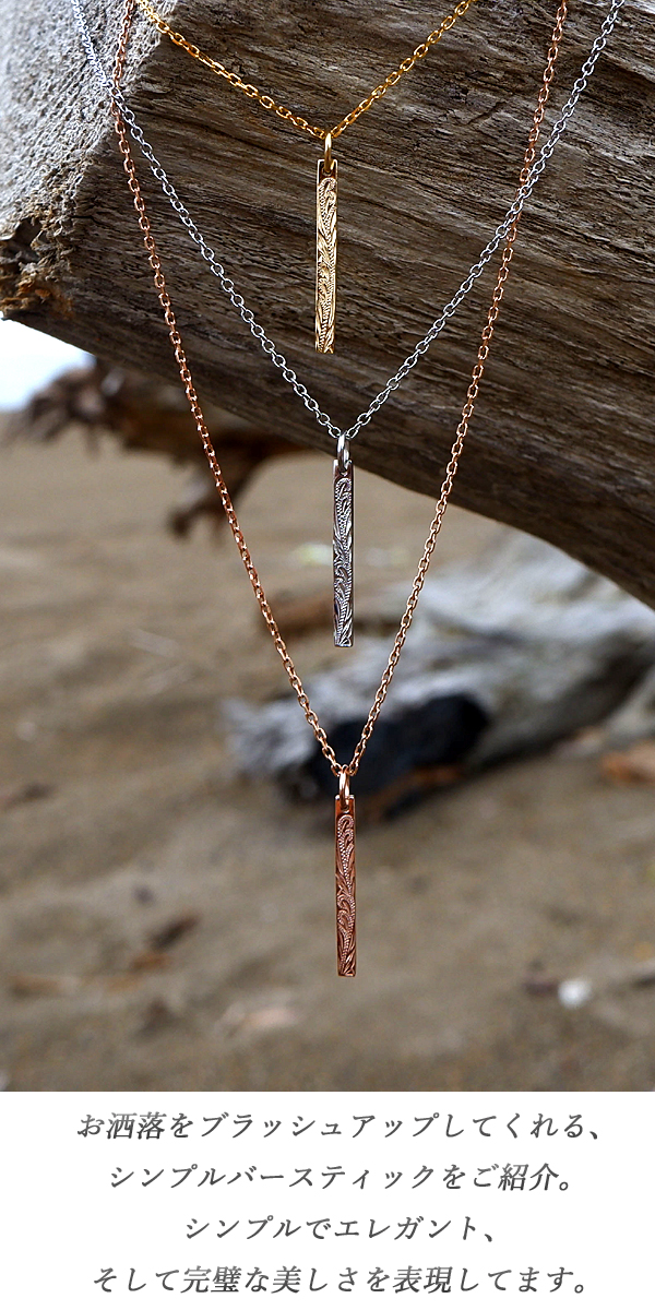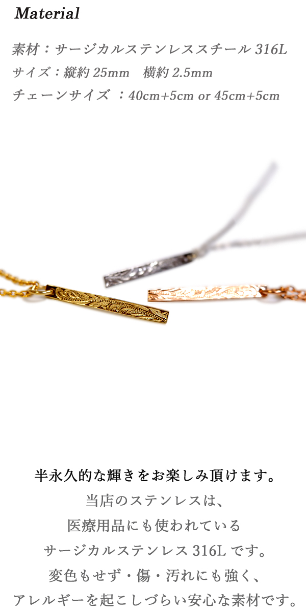 ハワイアンジュエリー ネックレス バー スクロール 波 金属アレルギー対応 サージカル ステンレス ギフト インスタ ラッピング対応