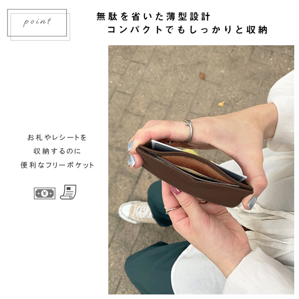 - スリムなので旅行に持って行きたく購入しました。 最低限のカード、お札、小銭入れの部分が取り出しやすいのも良かったです。