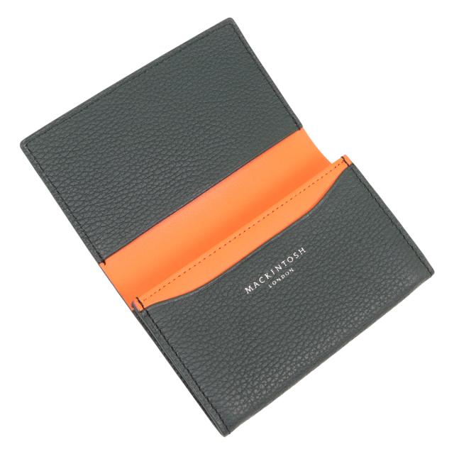 英国風のオーセンティックな逸品を輩出し続けるMACKINTOSH LONDON。こちらはシンプルでベーシックなシリーズ『MEDAL』の名刺入れ。深みのあるシュリンク型押しレザーにメダル形状のロゴプレートがさりげなくエレガントさを加え、ビジネスシーンにも違和感なくお使いいただけます。内装はササマチ仕様のカード収納部を2ヶ備える、仕分け管理に長けた設計。ご自分の名刺と頂いた名刺とを分類し、きれいに整理整頓していただけます。外側の背面にもフリーポケットを装備。すぐに取り出したいカードや名刺を入れておくのに最適です。本体素材にはソフトな質感が心地良く手に馴染む牛革スムースを採用し、内装革は存在感のあるオレンジの配色で統一しています。表面のシュリンク型押しは大人の印象を引き立たせるだけでなく、傷が目立ちにくいメリットも。外側のヘリは総コバ塗りとなっており、スッキリとした外観に仕上がりました。