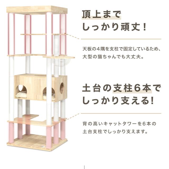 キャットタワー ラバーウッド 194cm キャットタワースタジアム 大型猫 スリム 省スペース 据え置き 猫タワー 猫 猫用品 爪とぎ 多頭飼い 落下防止柵 クリアボウルハンモック クリアボウル ハンモック付 天然木使用