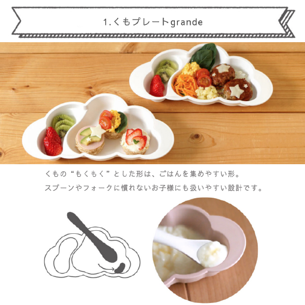 ごはんを集めてすくいやすい設計のくもプレート。