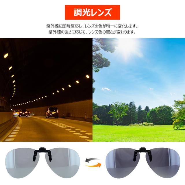 サングラス 偏光 調光 メガネの上から サングラス 跳ね上げ クリップ式 調光サングラス レディース メンズ 偏光 サングラス 調光サングラス UVカット ケース付き おしゃれ 簡単 ワンタッチ装着 ゆうパケット送料無料 釣り ドライブ 運転用