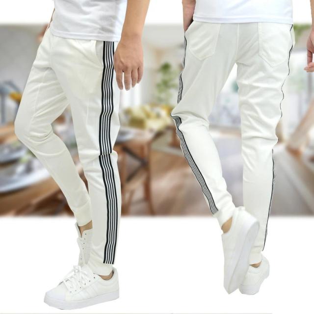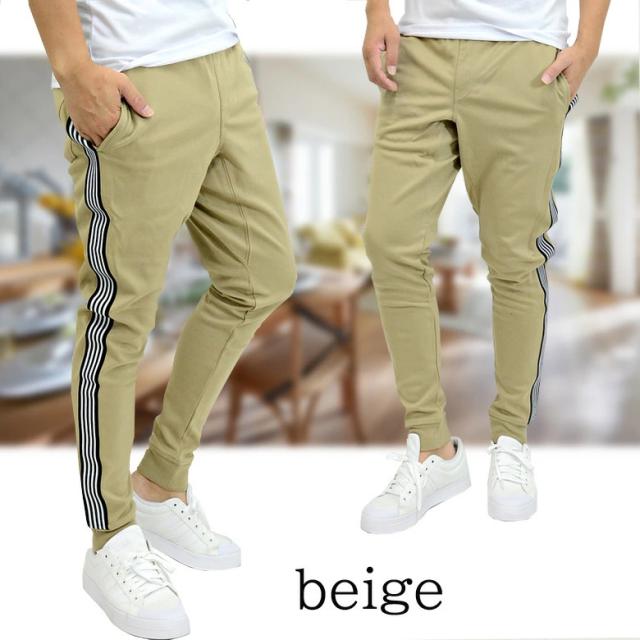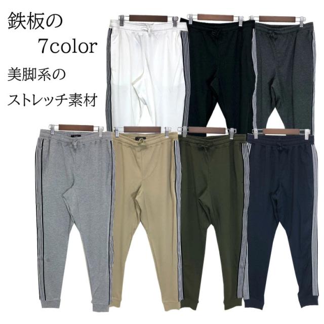 【閉店セール】ジョガーパンツ メンズ ジョグパンツ ロングパンツ 20320-bj スウェットパンツ ストレッチ サイドライン ホワイト ブラック グレー チャコール ベージュ カーキ ネイビー スリム イージーパンツ トレーニングパンツ スポカジ ダンス 衣装