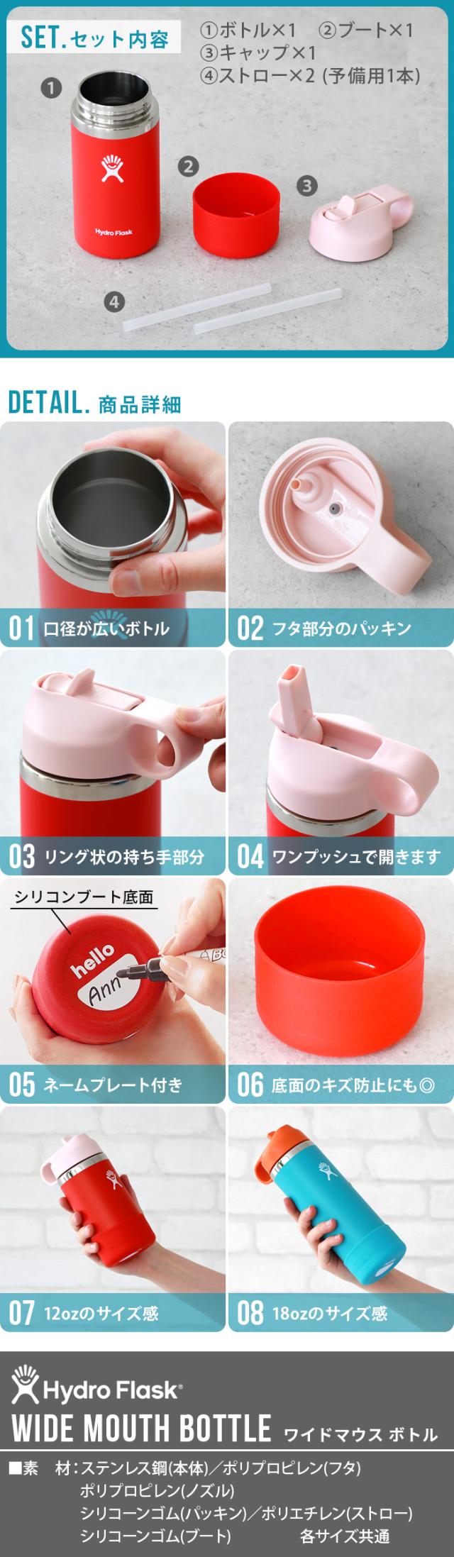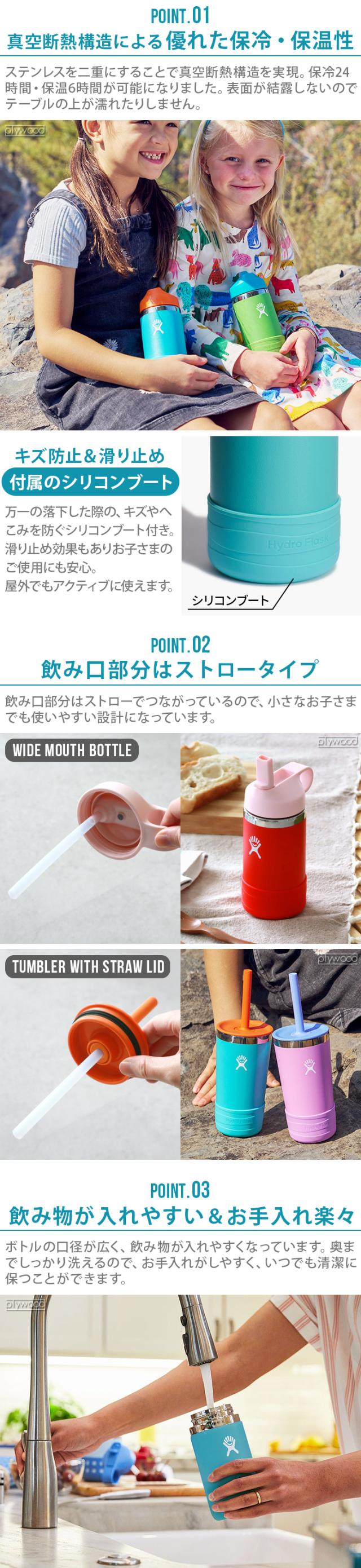 水筒 キッズ ストロー 直飲み 子供用 ハイドロフラスク キッズ ワイドマウス ボトル 354ml Hydro Flask KIDS WIDE MOUTH BOTTLE 12oz 保温 保冷 ステンレスボトル おしゃれ 子ども用水筒 軽量