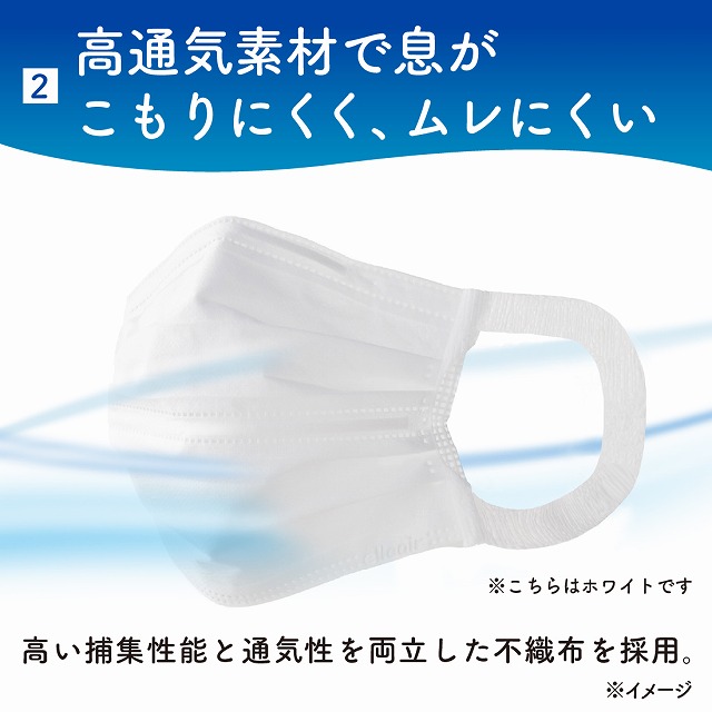 不織布3層構造の高機能フィルター採用で、ウイルス飛沫、かぜ、花粉、ハウスダスト、PM2.5の侵入を防ぎます。