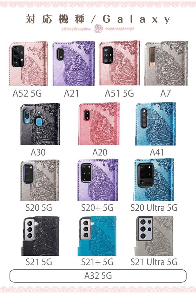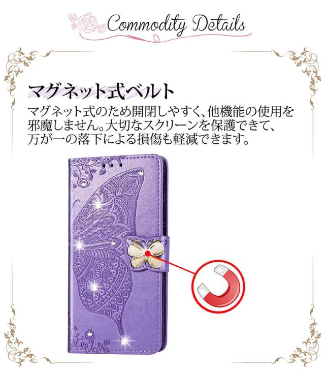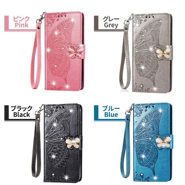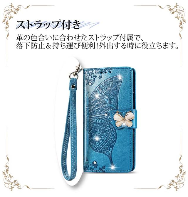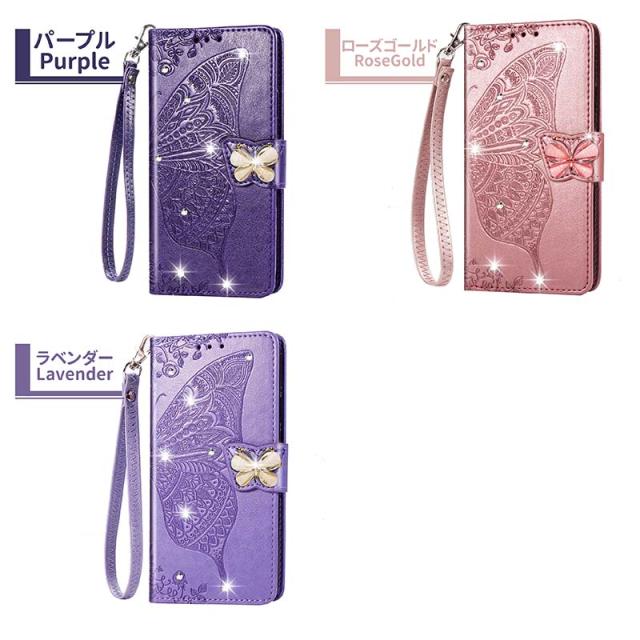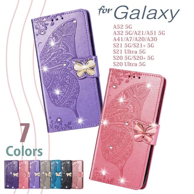 Galaxy S20 ケース 手帳型 カバー 耐衝撃 Galaxy S21+/S21/S21 Ultra/A51/A52/A20/A30/A7/A32 手帳型ケース 花 蝶 キラキラ カード収納 ストラップ 女性