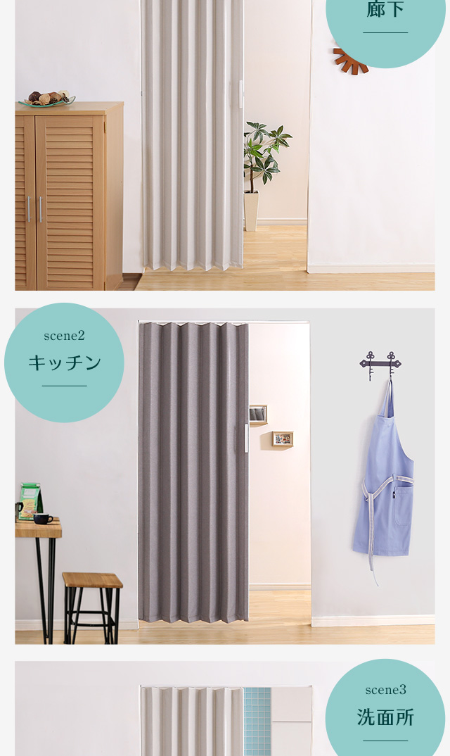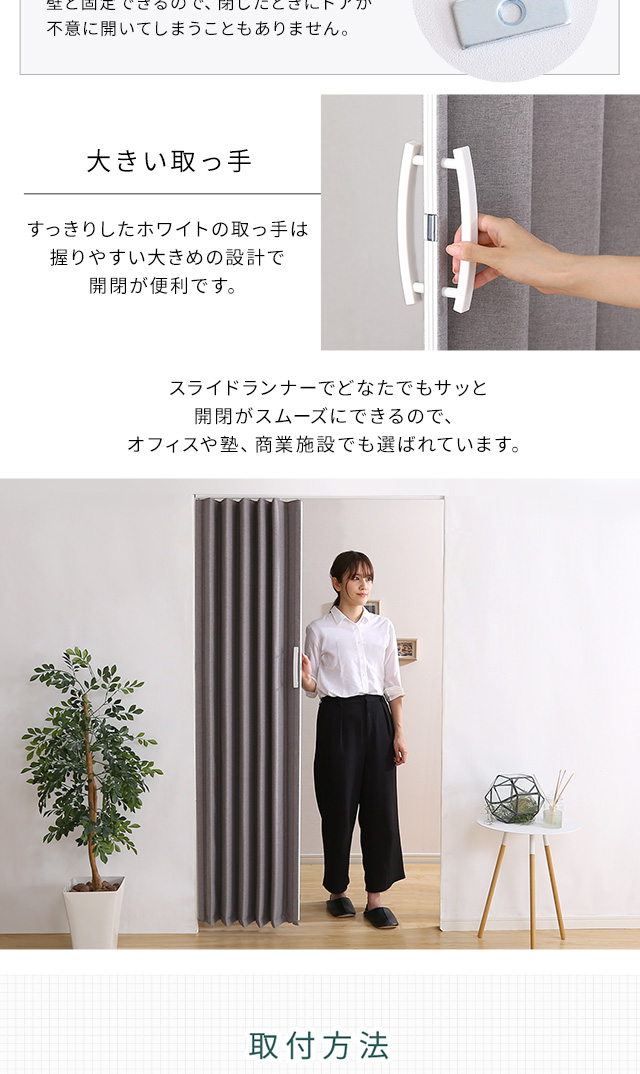 ファブリック アコーディオンドア 幅100 高さ174 送料無料 間仕切りドア アコーディオンカーテン おしゃれ 取り付け 簡単 インテリア マンション アパート 押し入れ 折れ戸 カーテンレール 後付け キッチン 洗面所 リビング 廊下