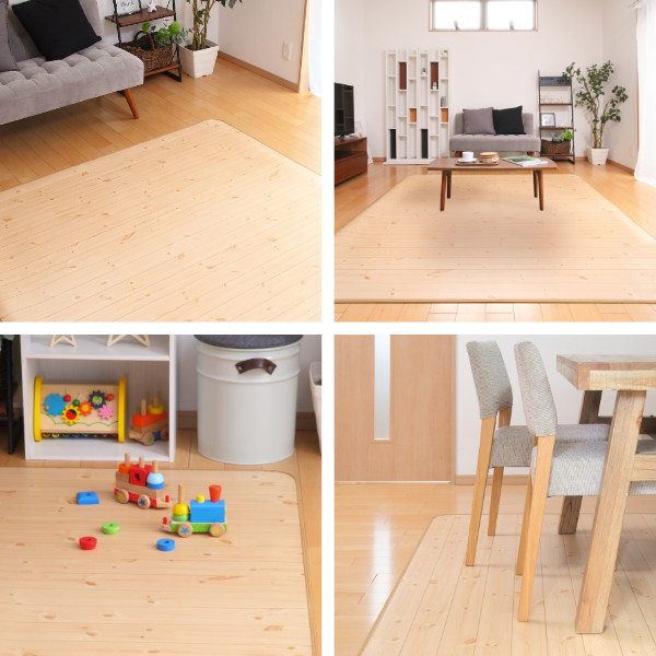 キズや汚れを守ってくれる万能なラグはリビングだけでなく、様々な場所でご使用頂けます。水や油が付きやすいリビングやダイニングスペース、子供部屋にピッタリです。