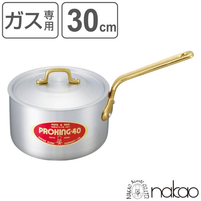 片手鍋 30cm ガス火専用 プロキング片手鍋 中尾アルミ 業務用 極厚 ( ガス火対応 目盛り付き アルミ鍋 フタ付き 片手 調理鍋 厨房用品 厨房器具 業務用鍋 鍋 なべ ソースパン 30 cm 日本製 )
