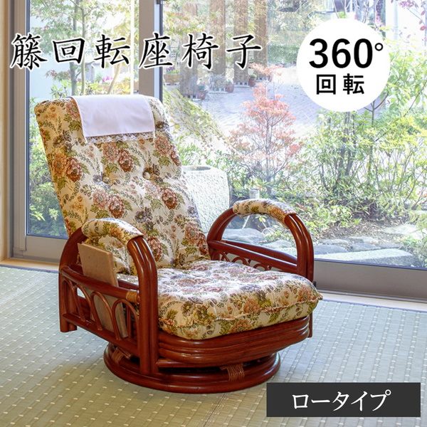 回転座椅子 高座椅子 肘掛け付き ハイバック ロータイプ おしゃれ 籐 ラタン製 高齢者 3段階リクライニング 360度回転