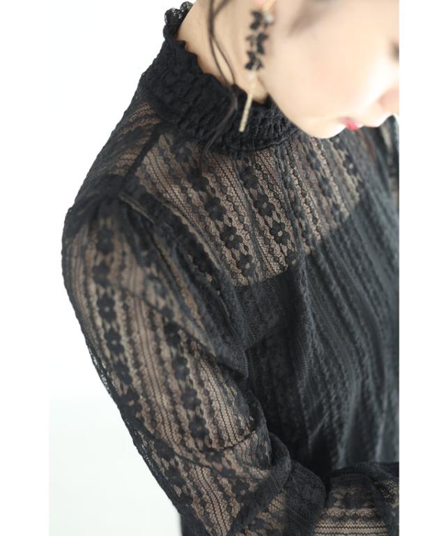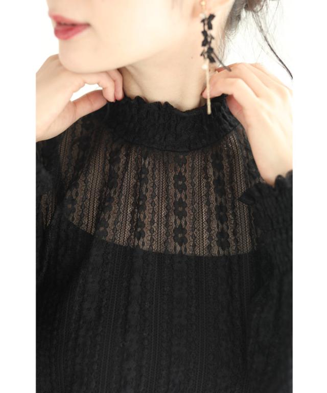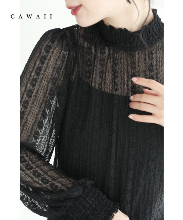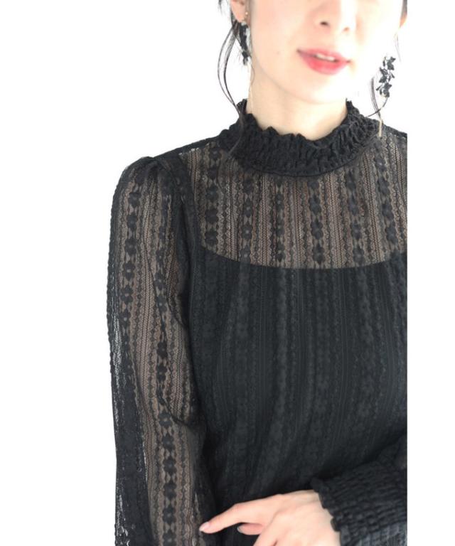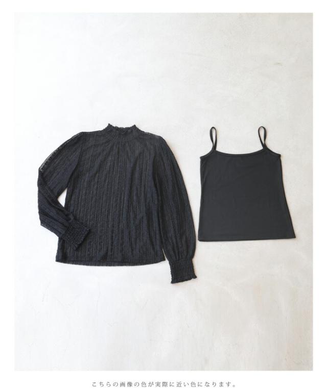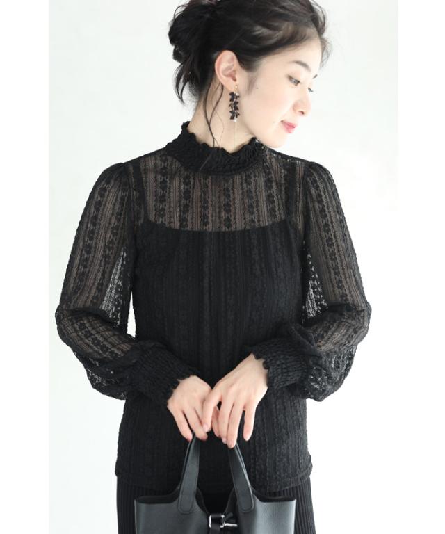 新作 新着 再入荷 CAWAII FRENCHPAVE フレンチパヴェ エレガント ベーシック カジュアル 可愛い かわいい カワイイ おしゃれ オシャレ お洒落 個性 個性的 定番 ベーシック 大人かわいい 大人可愛い 上品 女性らしい デザイン スタンダード ナチュラル きれいめ キレイめ シンプル フェミニン キャミソール付き 肌映え レース シアー ブラウストップス プルオーバー ブラウス シャツ トップス 長袖 長そで ロング袖 ハイネック S M 小さめ 小さめサイズ小さい 小さいサイズ 低身長 痩せ ほっそり 小柄 細身 薄手 薄手 涼しい ずずしい 春 夏 秋 春服 春物 夏 夏服 夏物 ブラック 黒 黒色 ワンカラー ワントーン おでかけ 休日 オケージョン パーティー 女子会?同窓会