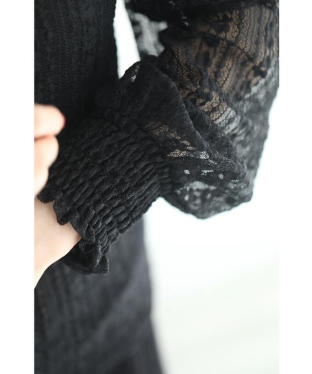 20251213sale 長袖 シャツ バルーンスリーブ wk00407 S~M 黒(キャミソール付き)肌映えレースのシアーブラウストップス cawaii タートルネック オケージョン お呼ばれ 通勤 きれいめ 上品 ミセス 60代 40代 50代