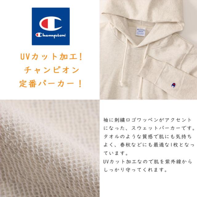 Champion チャンピオン レディース パーカー トレーナー スウェット UVカット 紫外線カット 春 秋 冬 白 グレー 黒 シンプル ロゴ アメカジ ストリート カジュアル ヴィンテージ ブランド シンプル スポーツ スポーツミックス 薄手 大人 カジュアル 部屋着 ラフスタイル ラク 楽 らくちん