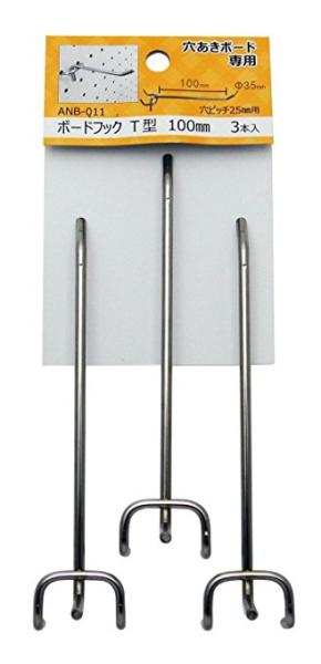 和気産業 8163400 穴あきボード専用フック T型100mm 3本入り ANB-011