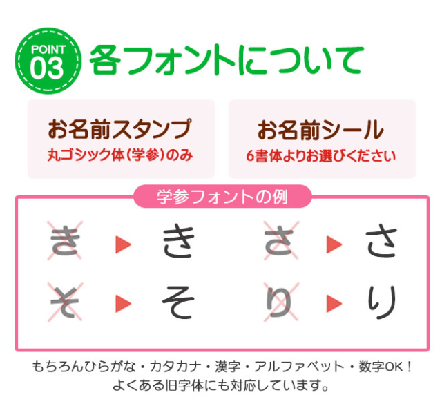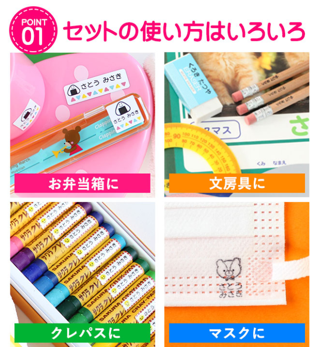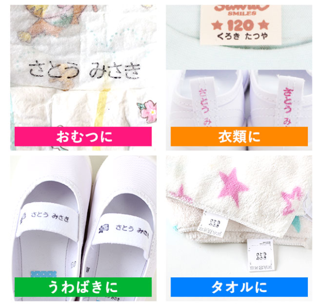 - ハンコで押した名前や絵柄も洗濯してもそんなに消えることなく使えています。