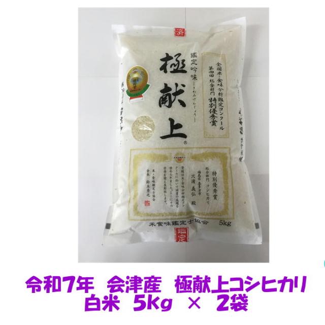 令和7年産 極献上 会津 コシヒカリ 白米 5kg×2袋 計10kg ご贈答 御歳暮 御中元 ギフト 米 お米 10キロ 送料無料 送料込み 【米販売店お断り 一般ご家庭専用】