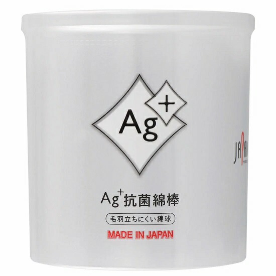 Ag+(銀イオン)の力で清潔に。医療機器と同一の製造エリアにて製造された、安心安全の日本製の綿棒です。専用のコーティング剤を使用し、毛羽立ちにくい綿球を実現しました。綿球も綿量を増量し、ふっくら形状に仕上げ、使い心地を追求しました。※本品は、キトサン(カニやエビなど甲殻類の殻から抽出される天然の抗菌成分)を使用した加工をしておりません。