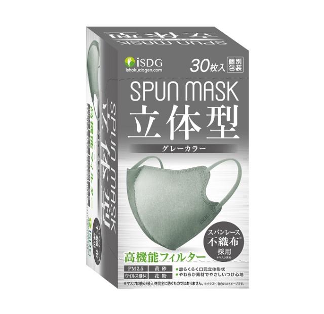 【医食同源 立体型スパンレース不織布カラーマスク グレー 個包装 30枚入 詳細】
