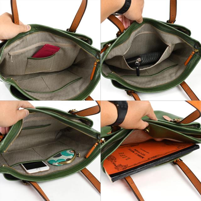 大きめ書類のサイズ感であるB4サイズが収納可能な汎用性の高いトートバッグです。外観の見た目はシンプルではありますが、機能性は実用性をしっかり考えて作られております。麺ポケットはファスナー開閉で内側にはミニポケットが3つと、ファスナーポケットが1つあります。ポケット類はマチ幅に関与しませんので、メインポケットは自由度高くお使いいただけます。また、外側前後にはそれぞれファスナー開閉のポケットとマグネットボタン開閉のポケットがあります。ともに薄いマチ幅を持っておりますので、それぞれのポケットにしっかりとした収納力があります。シンプルな構造と細かい仕分けポケットにより、直感的かつ自由度高くお使いいただけます。
