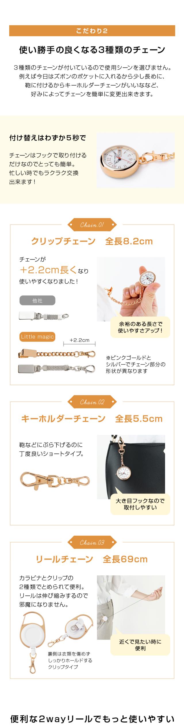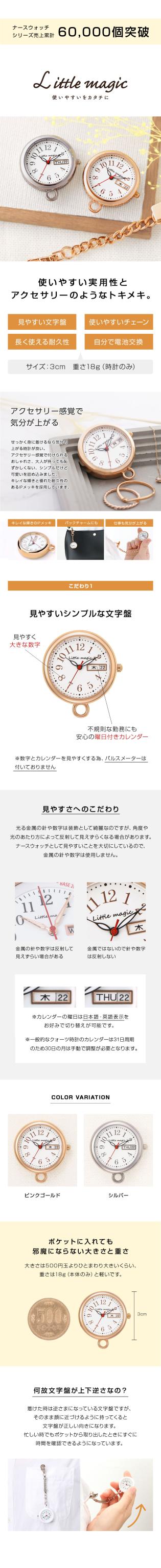 【シリーズ累計販売個数60,000個】【アクセサリーのようなトキメキ】ナースウォッチ【カレンダー】【外れないリール】【自分で電池交換 可能】可愛い ピンクゴールド シルバー ナース ウォッチ 看護師 時計 懐中時計 キーホルダー Little magic