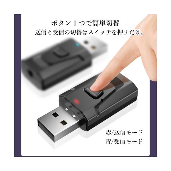 Bluetooth レシーバー 5.0 トランスミッター ブルートゥース 車 usb スイッチ イヤホン AUX アンプ内蔵 送信機 受信機 小型 (管理S) 送料無料