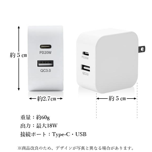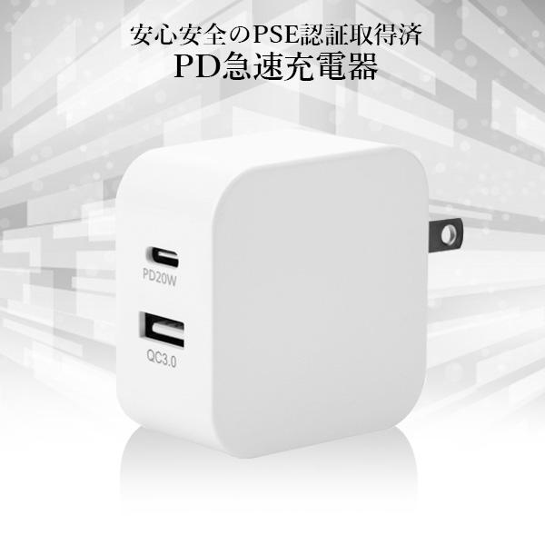PD充電器 iPhone AC アダプター Type C USB 20W 電源 2ポート コンセント アダプタ 急速充電 高速 スマホ アンドロイド iPad (管理S) 送料無料