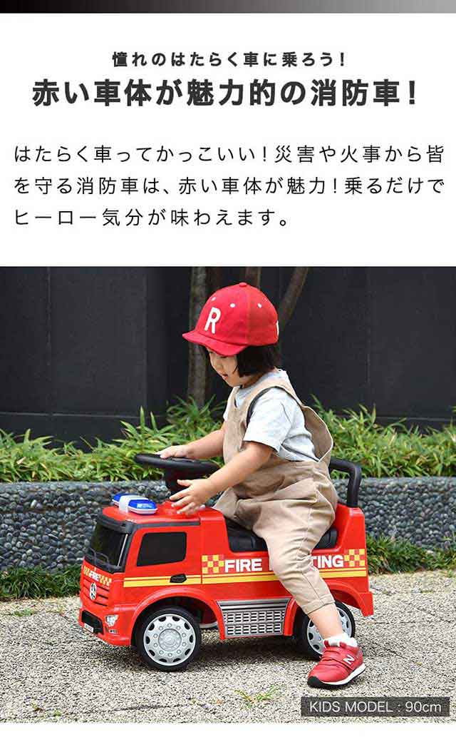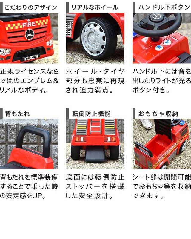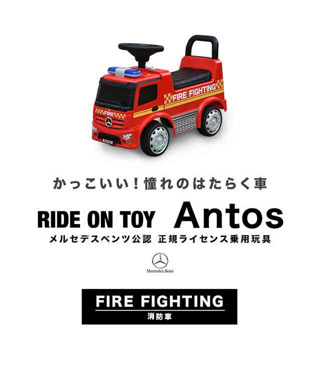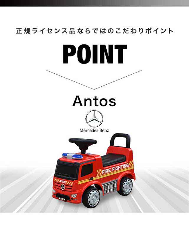 乗用玩具 足けり ベンツ 正規ライセンス 消防車 トラック 車 はたらく車 くるま mercedes-benz Antos FIRE ファイヤートラック 乗り物 屋外 外遊び 背もたれ 転倒防止 ストッパー付 足蹴り 脚力 外車 人気 おすすめ おもちゃ 1歳 2歳 3歳 送料無料