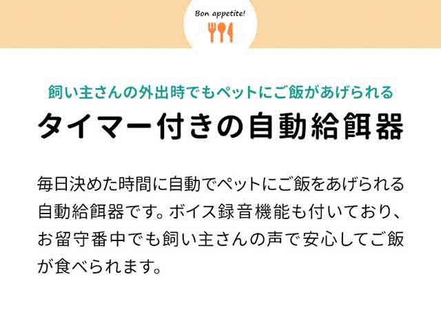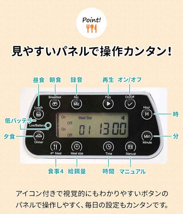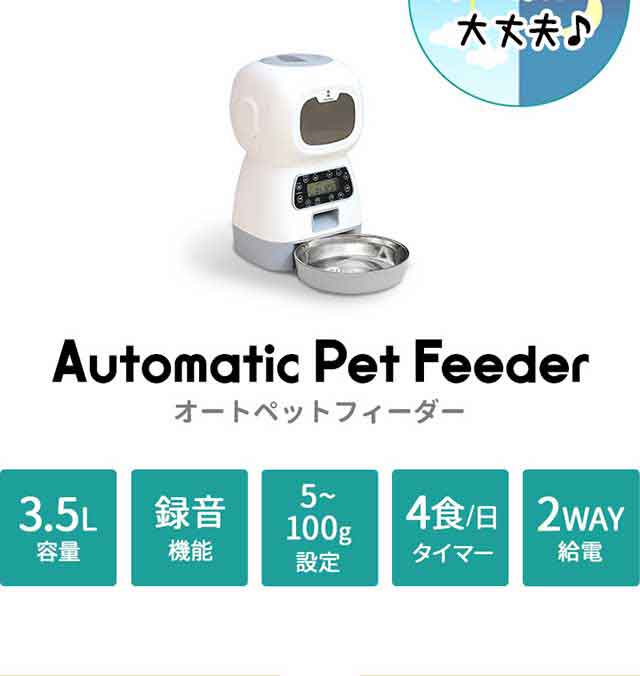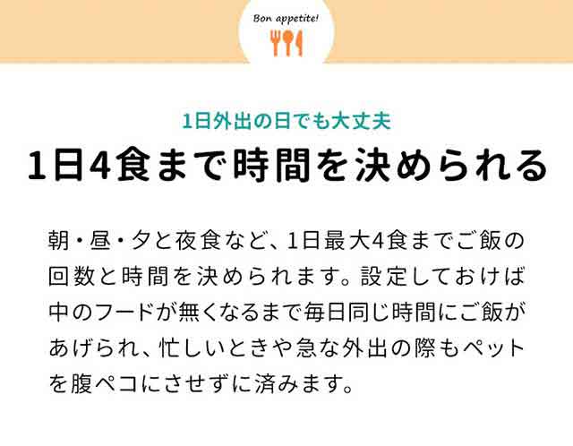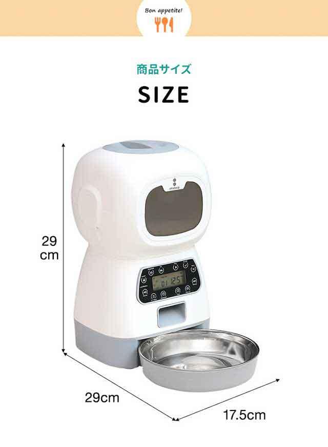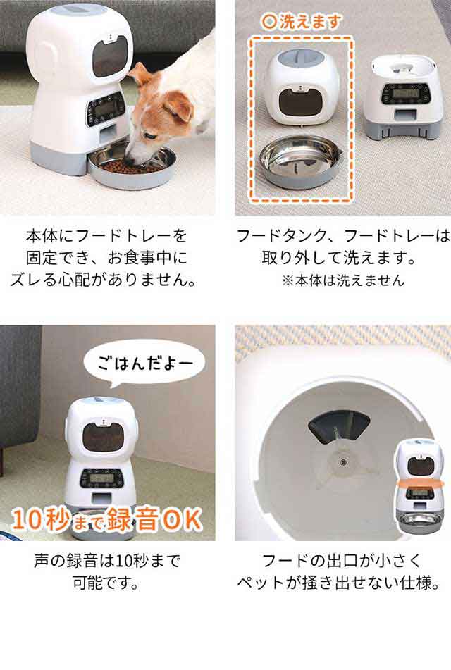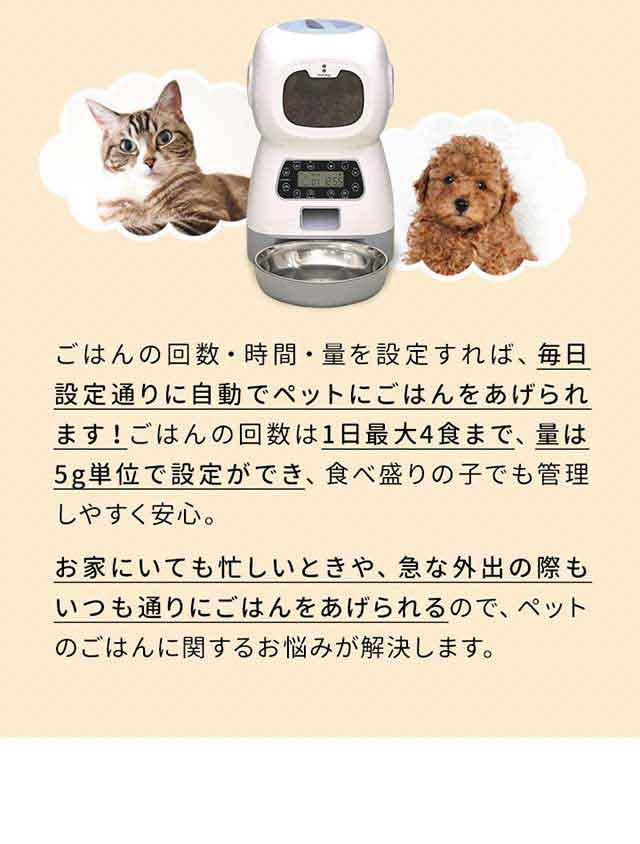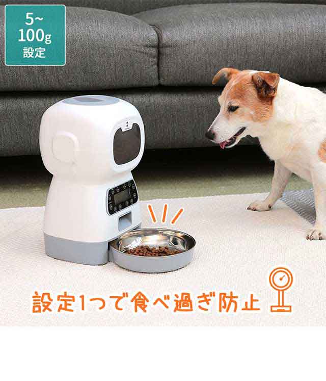- 他の商品より安く、設定も簡単で良かったです。 欲を言えば電源を切った後に時間の設定をしなければいけないのが少し手間かなとは思いますが、価格を考えると十分だと思います。 うちの子はとても食いしん坊で...
