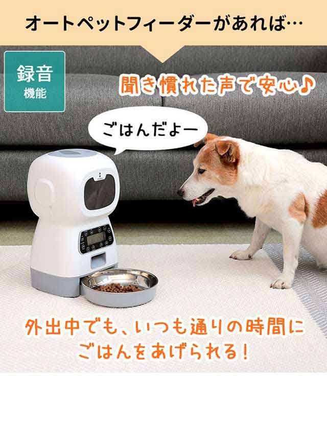 自動給餌器 オートペットフィーダー ペットフード 5g単位 タイマー・音声メッセージ録音機能 自動餌やり機 自動給餌機 いぬ ねこ うさぎ 犬 猫 自動餌やり器 給餌 ドライフード ドッグフード キャットフード 給餌器 フードディスペンサー 送料無料
