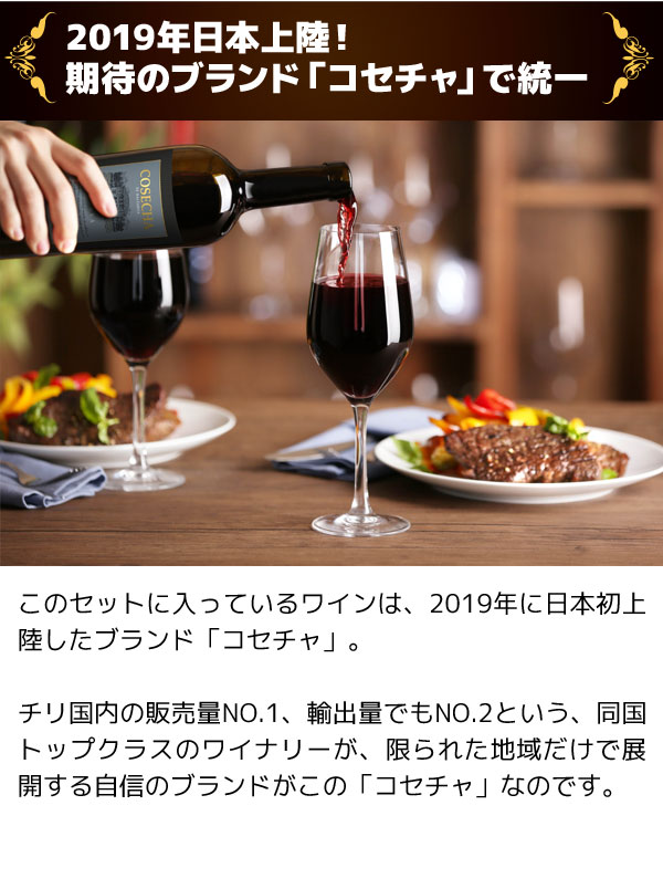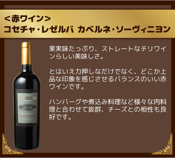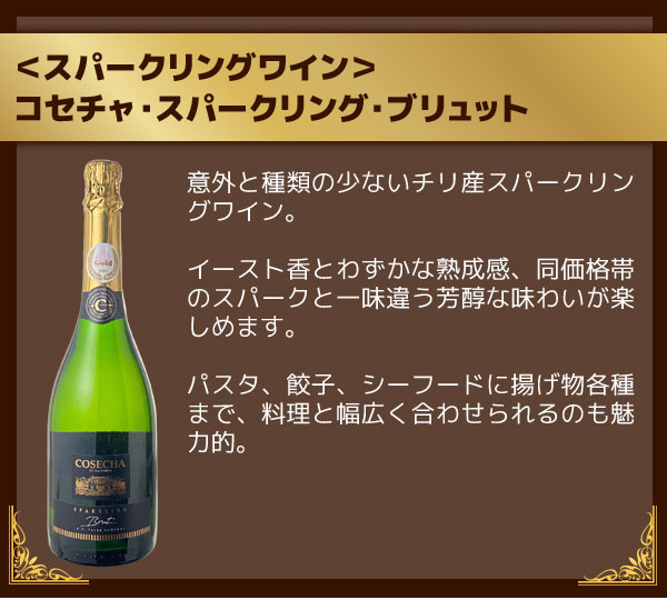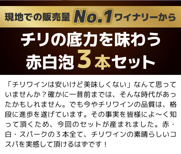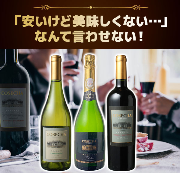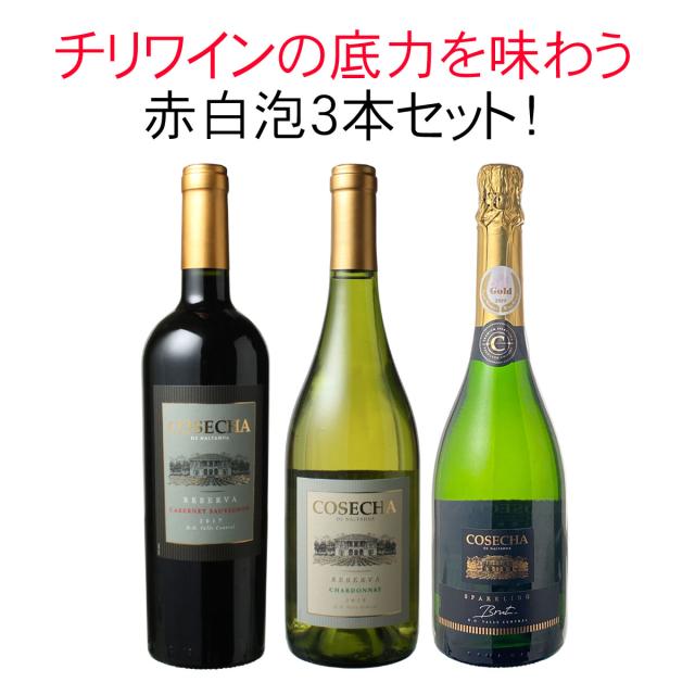 【送料無料】チリワインの底力が味わえる、コセチャ赤・白・スパークリング3本セット!
