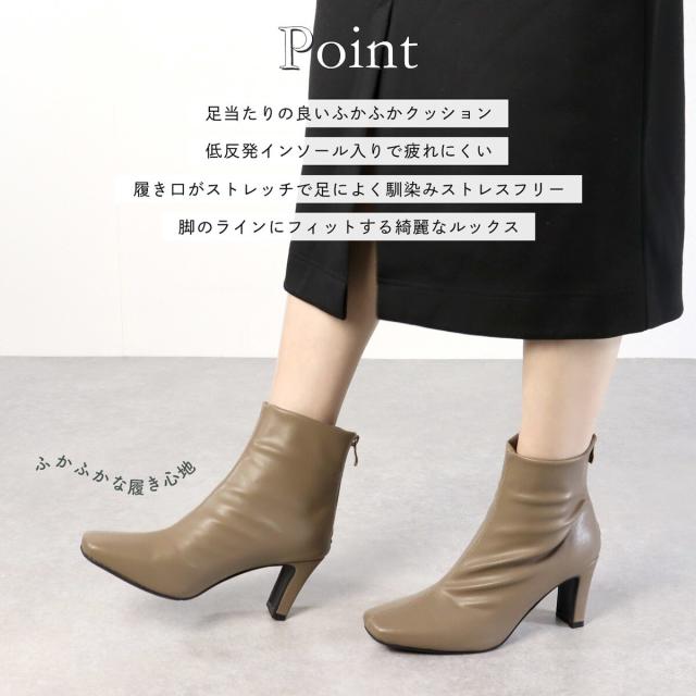 ●つま先がシャープな形のスクエアの木型にすることで、足元を華奢にキレイに見せおしゃれ感UP!