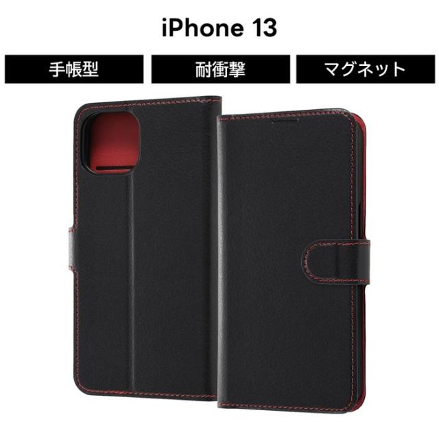 iPhone 13 耐衝撃 手帳型ケース シンプル マグネット ブラック レッド カード収納 iPhone13