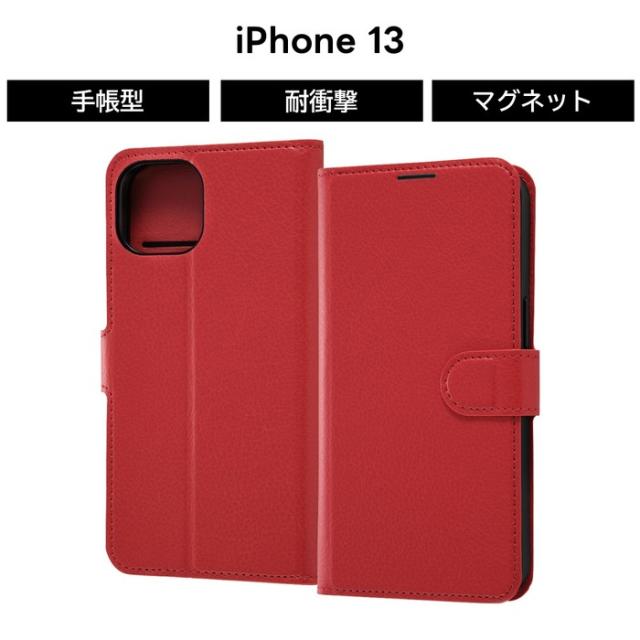 iPhone 13 耐衝撃 手帳型ケース シンプル マグネット レッド カード収納 iPhone13