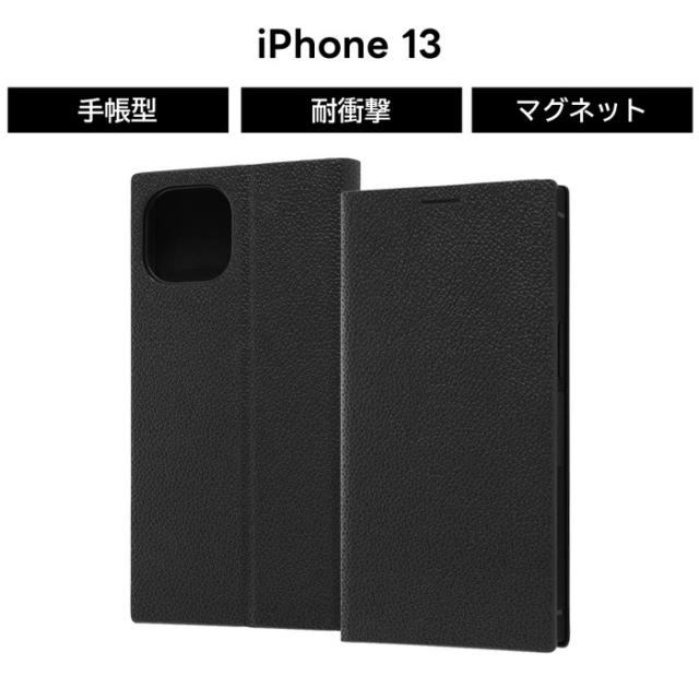 iPhone 13 耐衝撃 手帳型レザーケース サイドマグネット スクエア ブラック カード収納 iPhone13