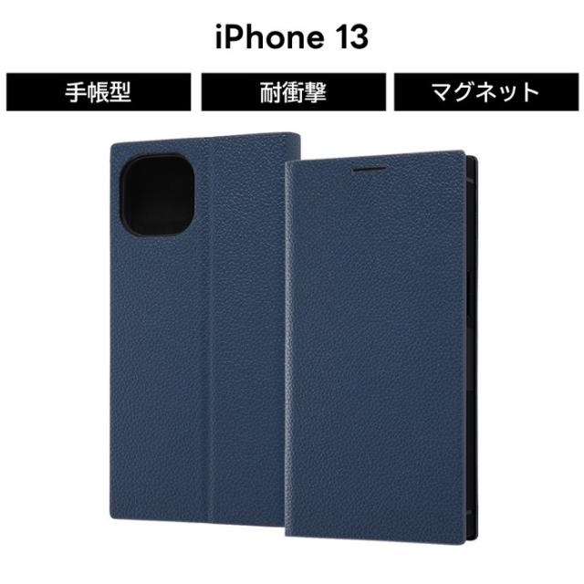 iPhone 13 耐衝撃 手帳型レザーケース サイドマグネット スクエア ダークネイビー カード収納 iPhone13