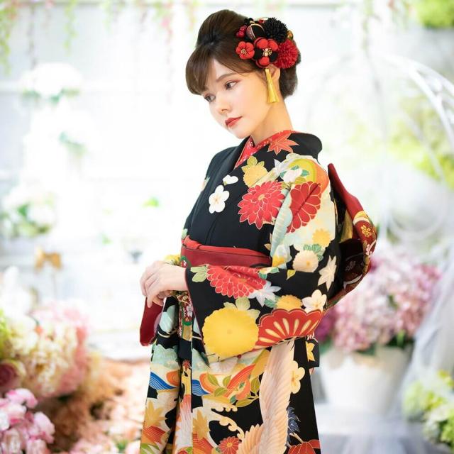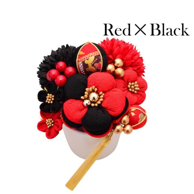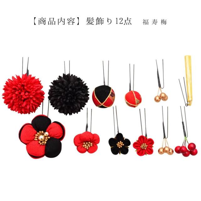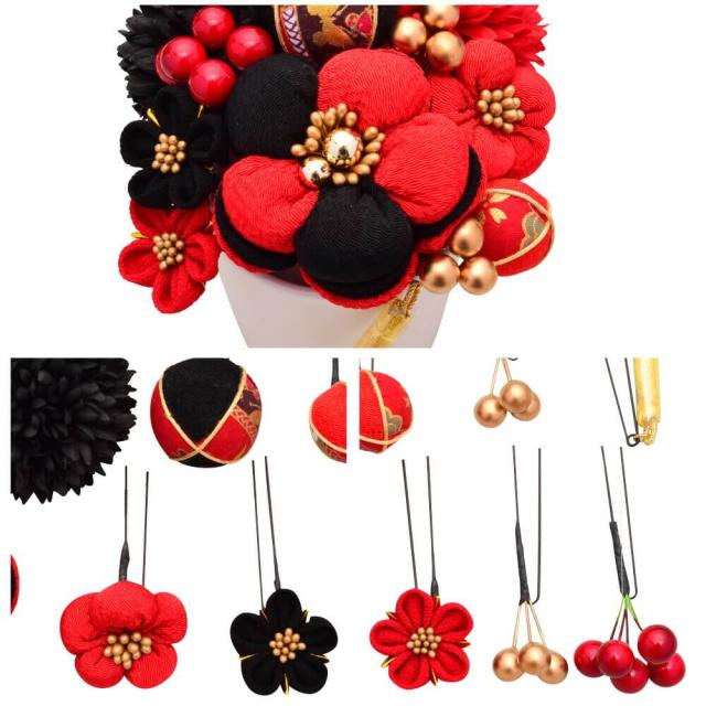 髪飾り 成人式 結婚式 振袖 ピンポンマム Uピン 12点 黒 赤 つまみ細工 ちりめん 飾り玉 前撮り 卒業式 着物 和装